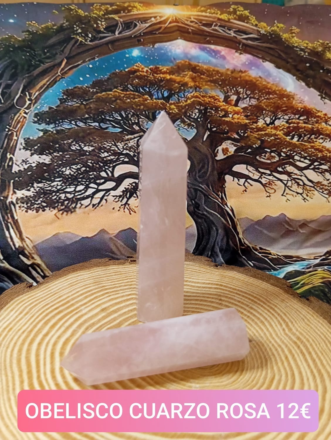Obelisco generador de Cuarzo rosa de 9 cm de largo ideal para conectar con el amor y la sensibilidad