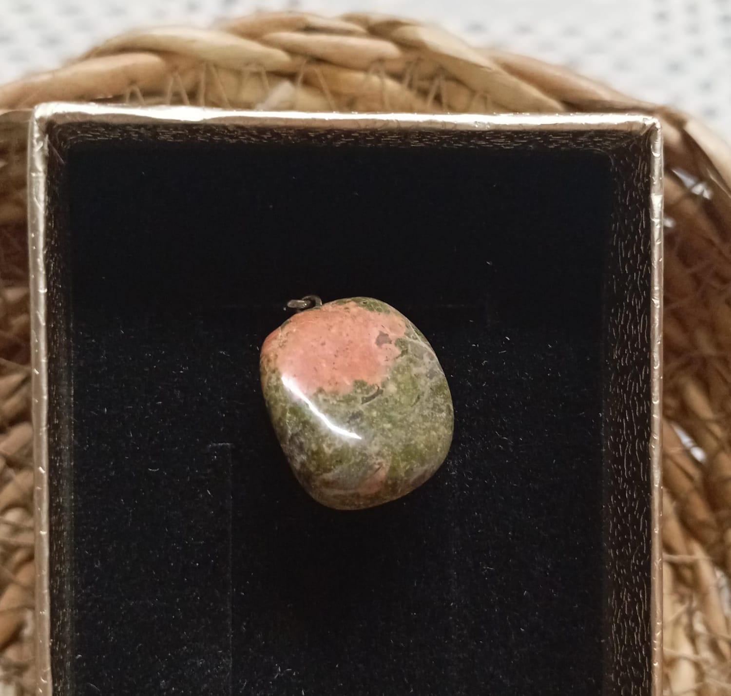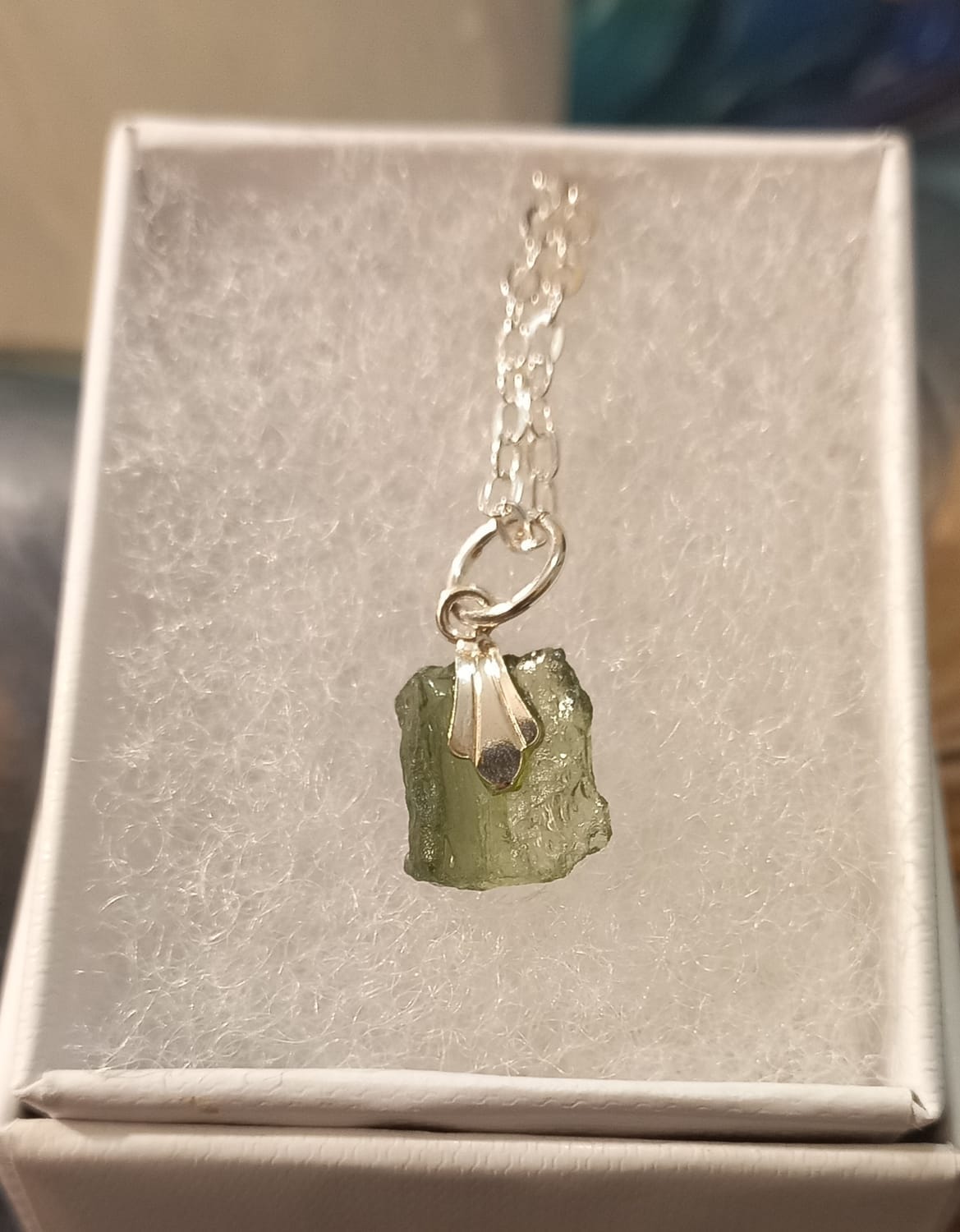 Colgante de Moldavita especial conexión y protección, el producto final puede variar algo en tamaño y forma con respecto al de la foto